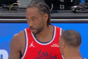 快船VS国王,伦纳德眼角被打破血流不止,回更衣室治疗后目前已经返场。