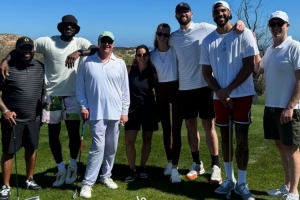 体育资讯2月19日讯 今日塔图姆更新IG动态,晒出自己与詹姆斯、乐福一起打高尔夫的相关动态。